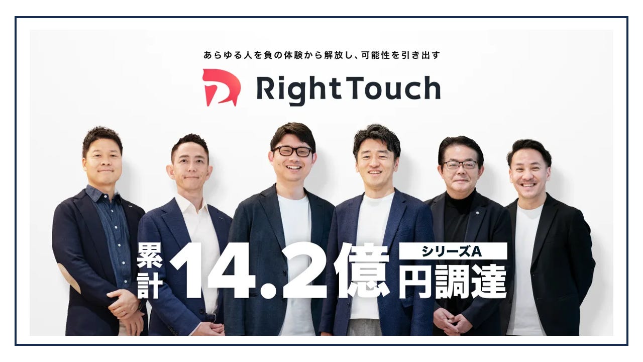 RightTouch has completed a Series A funding round totaling over 800 million yen through third-party allotment to Global Brain Corporation and GMO VenturePartners, as well as loans from Shoko Chukin Bank. This brings the company's total funding to 1.42 billion yen.